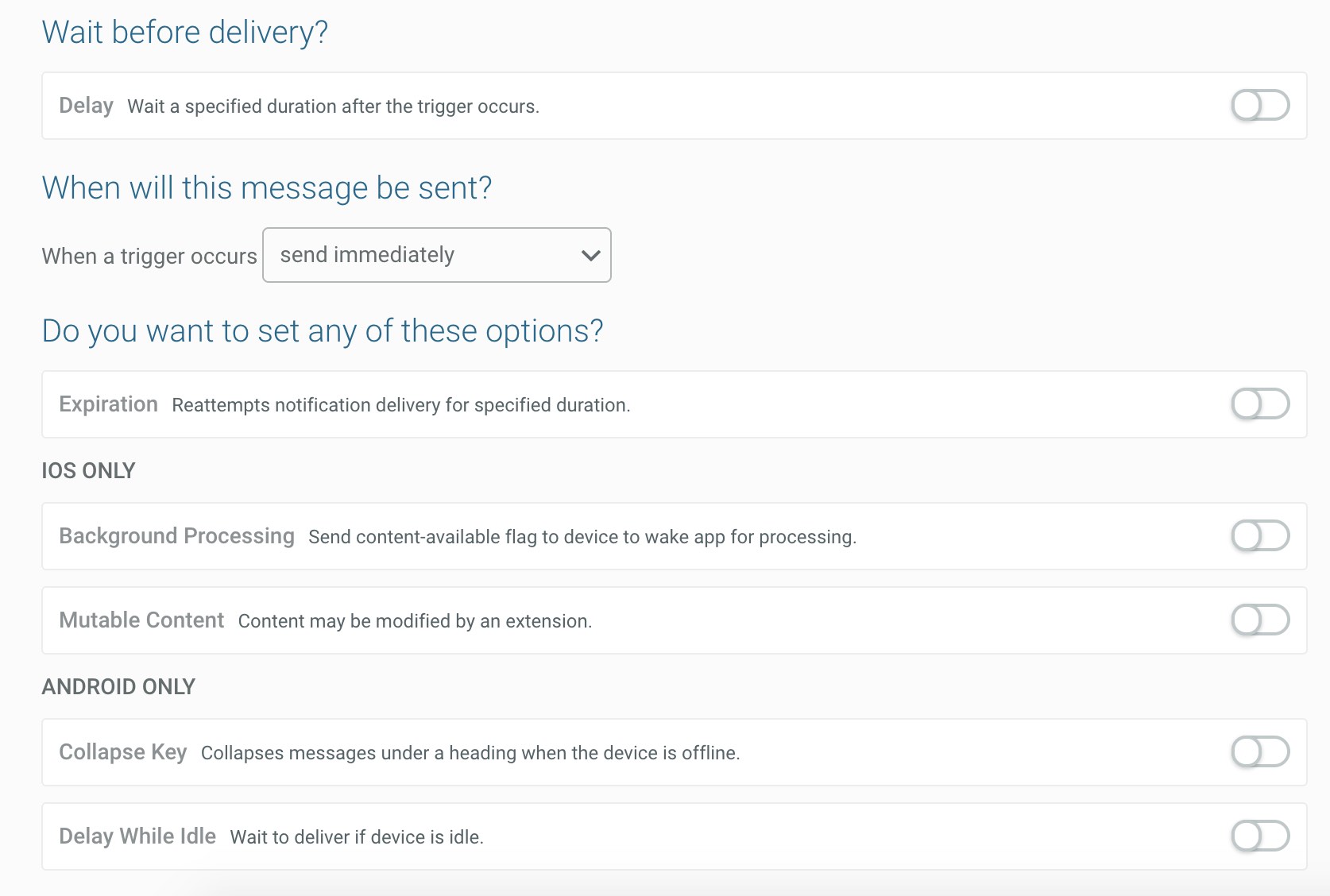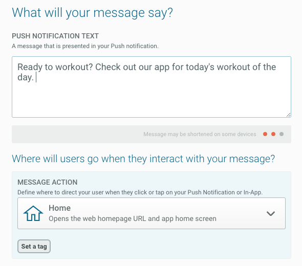 5) From here, you can continue to create your automated message just like any other. Choose what type of message you’d like to send (Push Notification, In-App Message, and/or Message Center).
