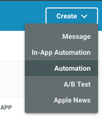1) To create your automation, navigate to your Urban Airship dashboard and click Create > Automation.
