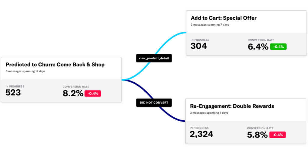 Churn may be a fact of life for retailers, but efforts that deliver even a small improvement in retention can have a huge impact on your bottom line. In fact, studies have shown that a 5% increase in customer retention can increase company revenue by 25-95%! With next generation solutions like Airship Journeys, you can leverage AI to predict which app users are at high risk of churn and re-engage with push notifications, in-app messaging and more — before it’s too late!