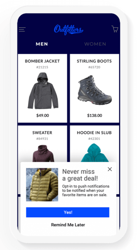 To deliver a truly personalized experience, you need your customers to opt in to notifications and location services. But if they decline, when should you ask again? The only way to know is to test! For retail apps, try prompting users again after they’ve viewed an item. For example, encourage customers to opt in to notifications so that they can get notified when their favorite items go on sale.