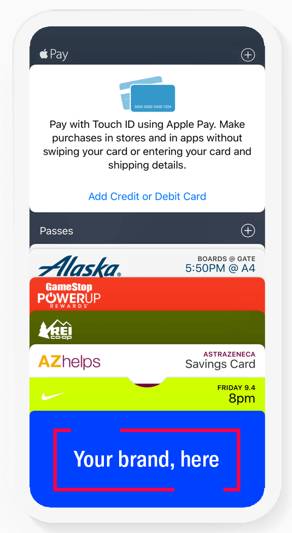 The cost of getting a new app user continues to grow. With Mobile Wallet, you’re taking advantage of a native app (already on your customer’s phone, no download required) to deliver content they want where they want it.