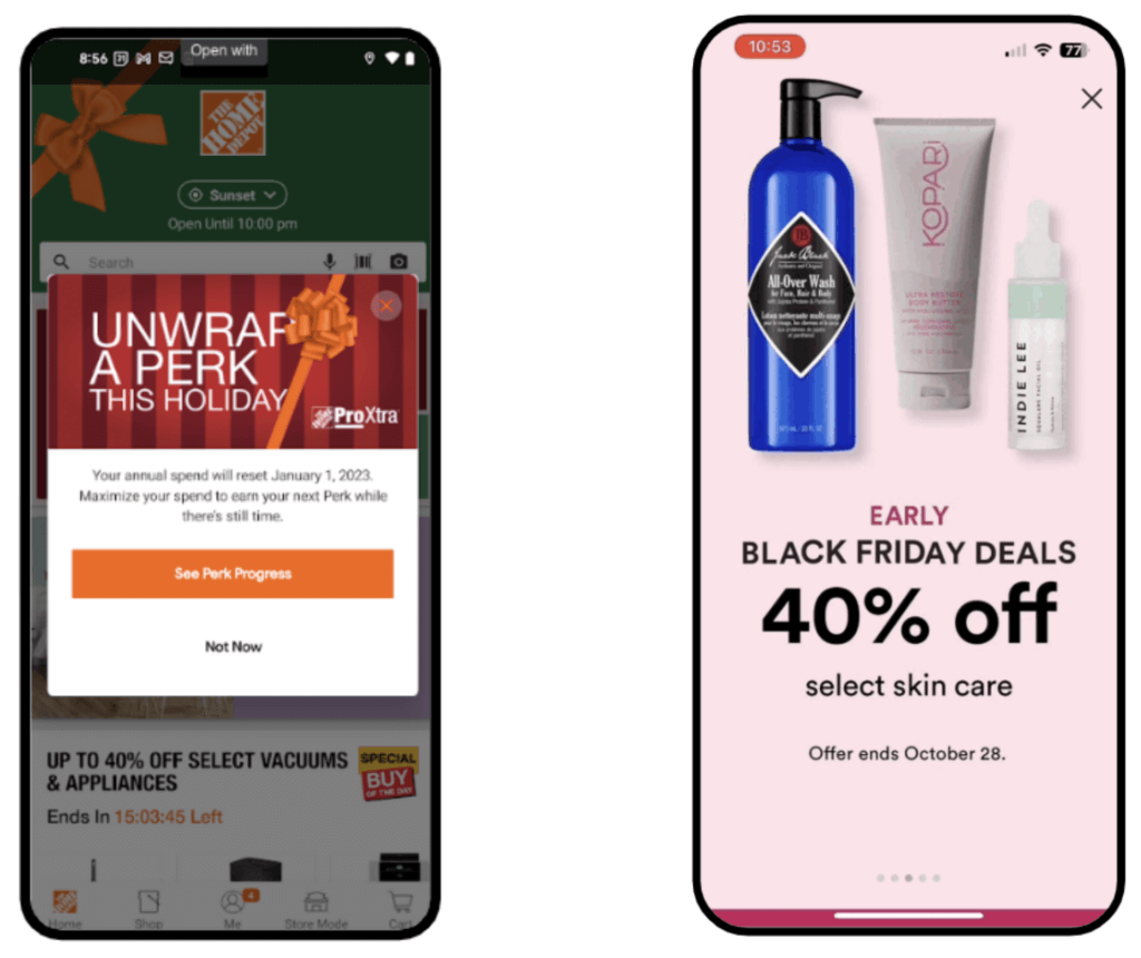 Des enseignes comme Home Depot ou Ulta Beauty ont intégré leurs applications à d’autres points de contact pour créer une expérience utilisateur fluide. Offrir des offres ciblées et contextuelles est au cœur de leurs efforts d’engagement et de monétisation.