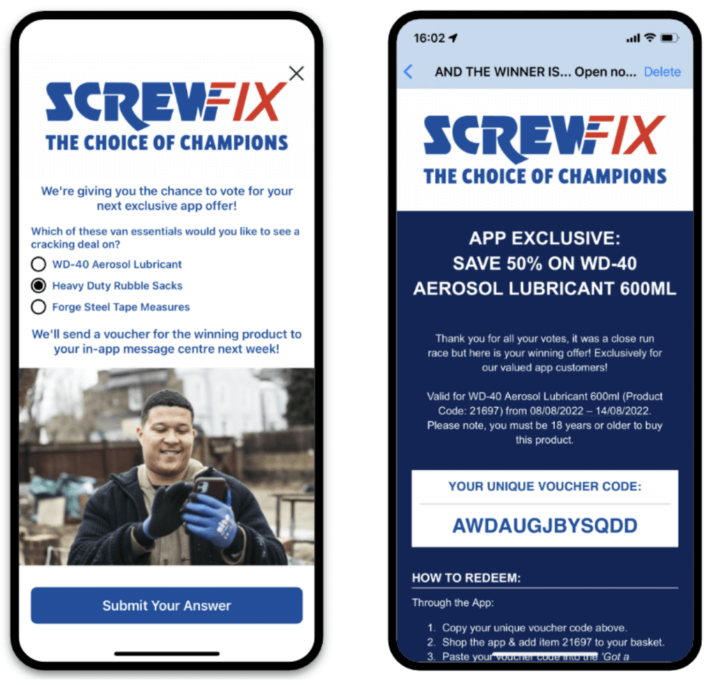 Screwfix a intégré une enquête dans l’app pour recueillir