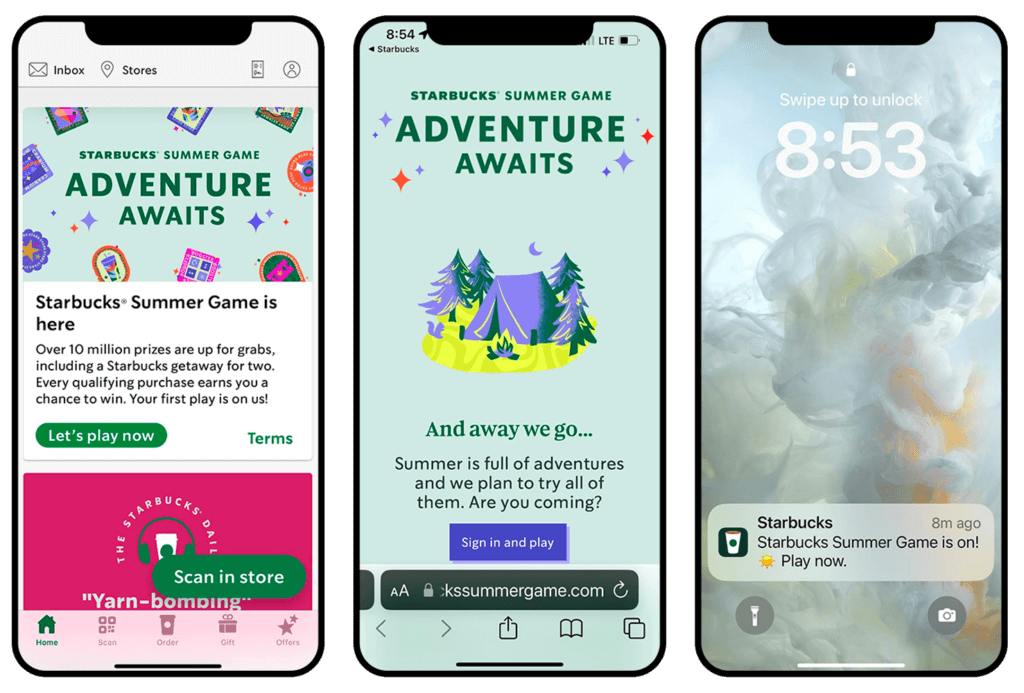 Certaines grandes marques sont déjà des championnes de la gamification. Starbucks, par exemple, offre régulièrement à ses clients la possibilité de gagner des Étoiles dans le cadre de son programme fidélité, en relevant des défis. Ces défis sont hautement personnalisés et ont pour but d’orienter le comportement d’un client donné en termes de fréquence d’achat, d’heure de la journée, de montant de commande ou de produits achetés.