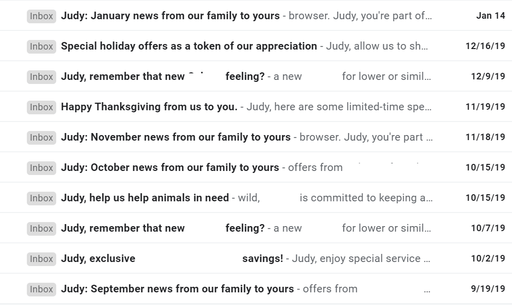 An actual screenshot of all the emails “Judy” has gotten
