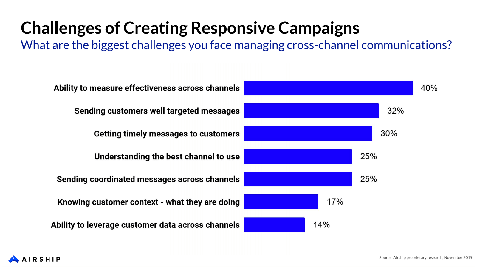 Results of an Airship survey asking marketers what their biggest challenge was in cross-channel communications