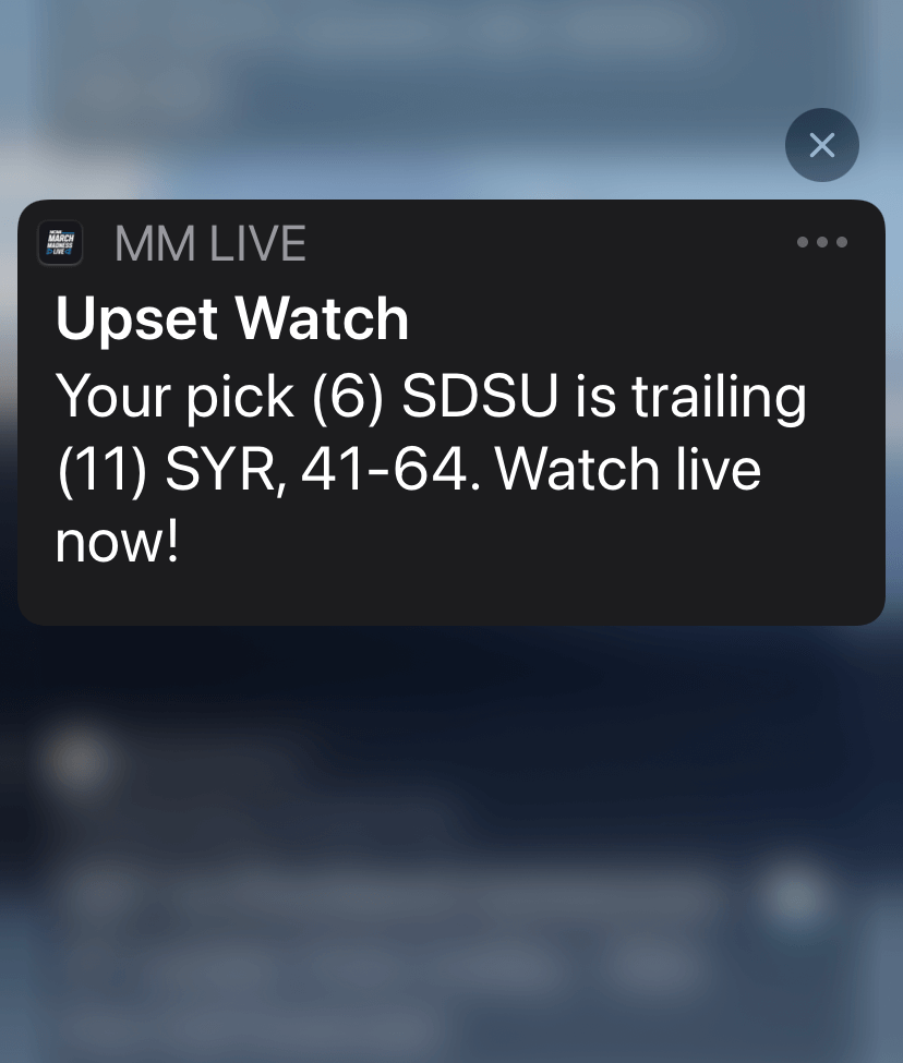 Now Personalized Bracket Alerts customize the user experience like never before, using predictive scoring and the excitement algorithm with individual’s bracket selections. Alerts include scenarios of what games need to be won to move up in rank and when important games based on brackets are close in score. As a result, users are seeing notifications that are personally relevant and of immediate importance, resulting in live stream viewing that’s 26% longer than regular alerts.