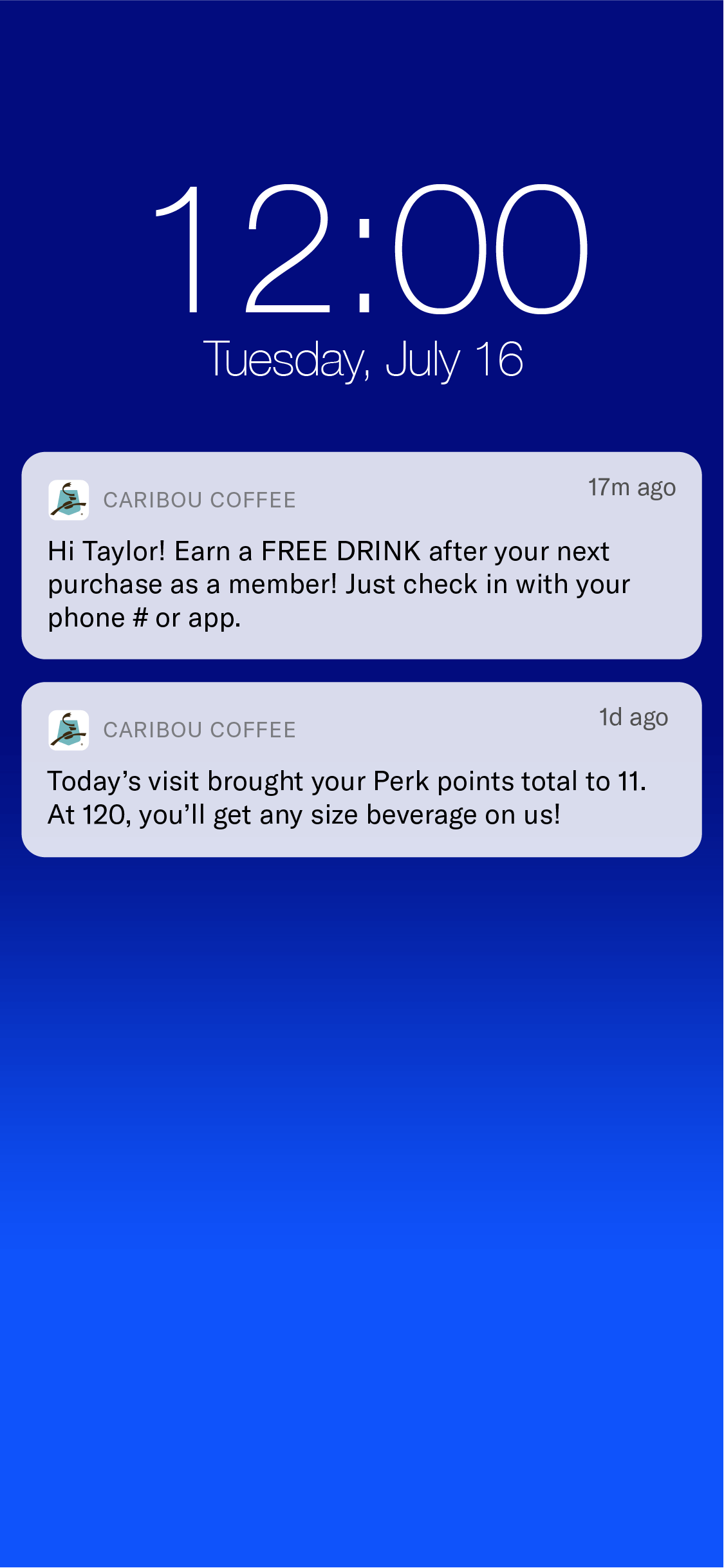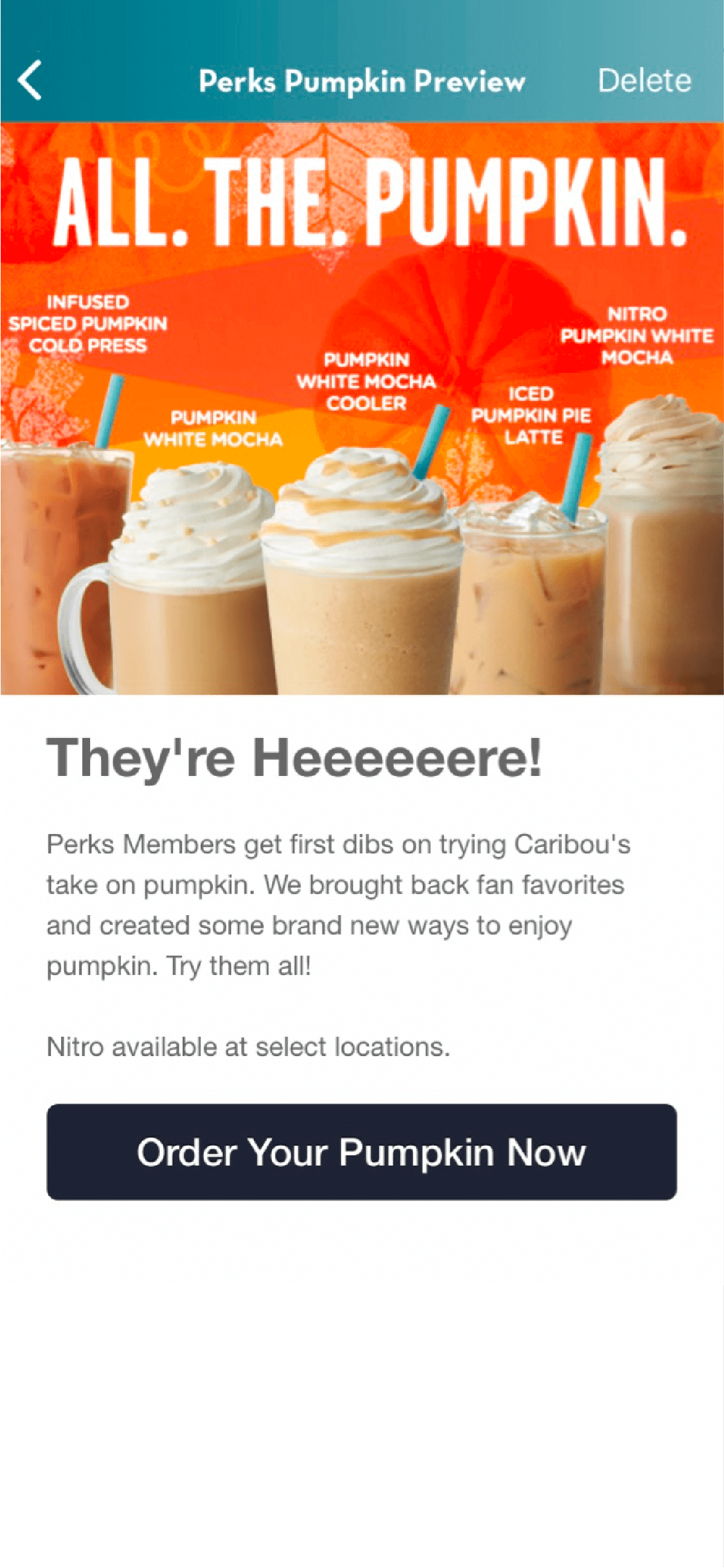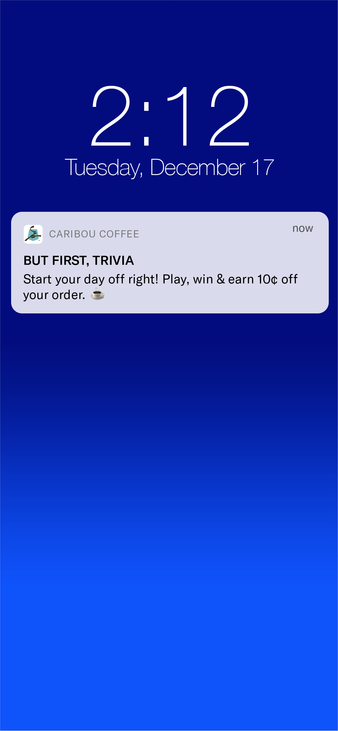 Today, 59% of Caribou Coffee’s ~575K app users opt in to push notifications — and, on average, the company sees a 127% increase in daily active users after sending a push.