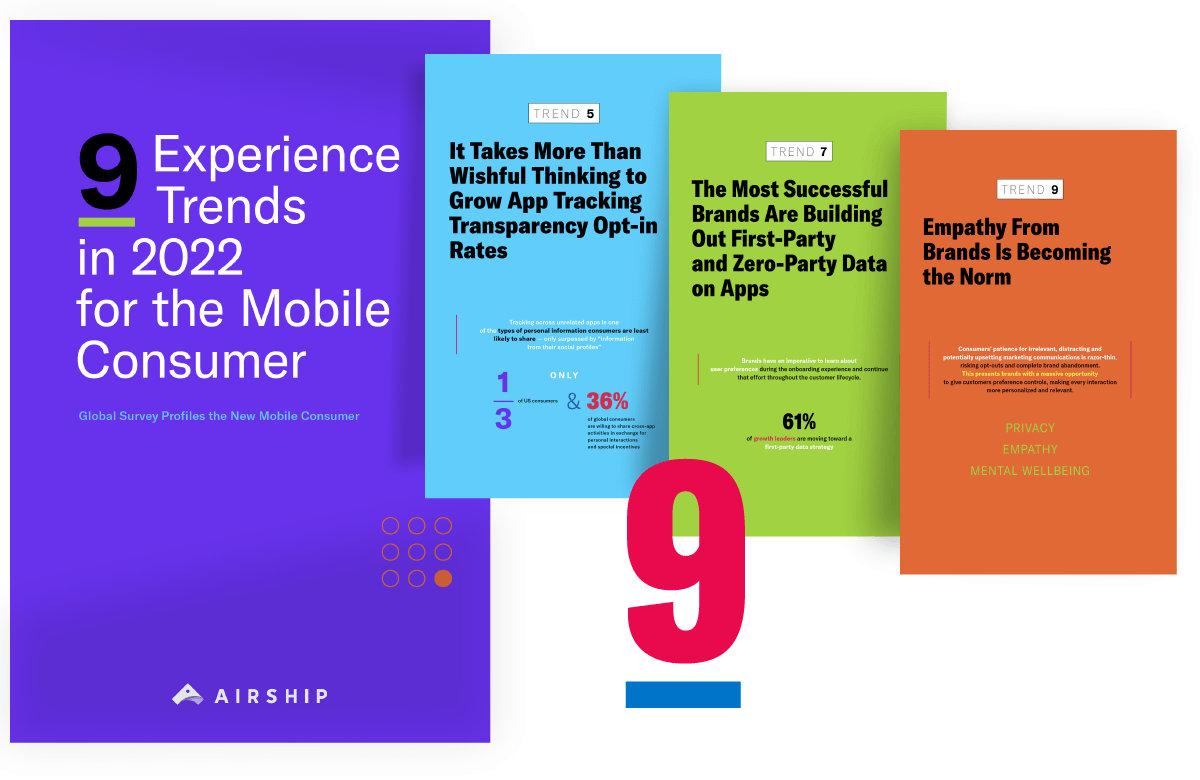 A lingering pandemic, continuing supply chain and inflation concerns, and preference for all things mobile means both customers and brands are relying more than ever on apps. How will this macro trend play out in 2022? Will customers continue to prioritize the mobile app over other channels? Will brands evolve customer experiences to meet new demands? What will be the long-term impact of COVID-19 on customer behavior and app design? How will consumers and brands negotiate reciprocal value exchanges that create greater value for everyone involved? How will brands respond to fundamental platform changes? What do consumers really, truly, care about? Read Airship’s answers in 9 Experience Trends for the Mobile Consumer.